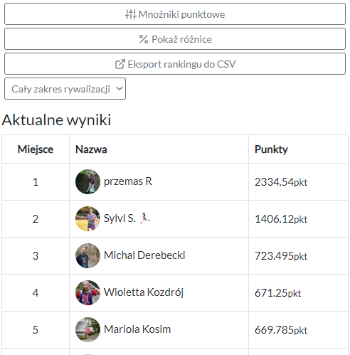 W widoku rywalizacji możemy na bieżąco sprawdzić aktualne przeliczniki klikając w "Mnożniki punktowe".